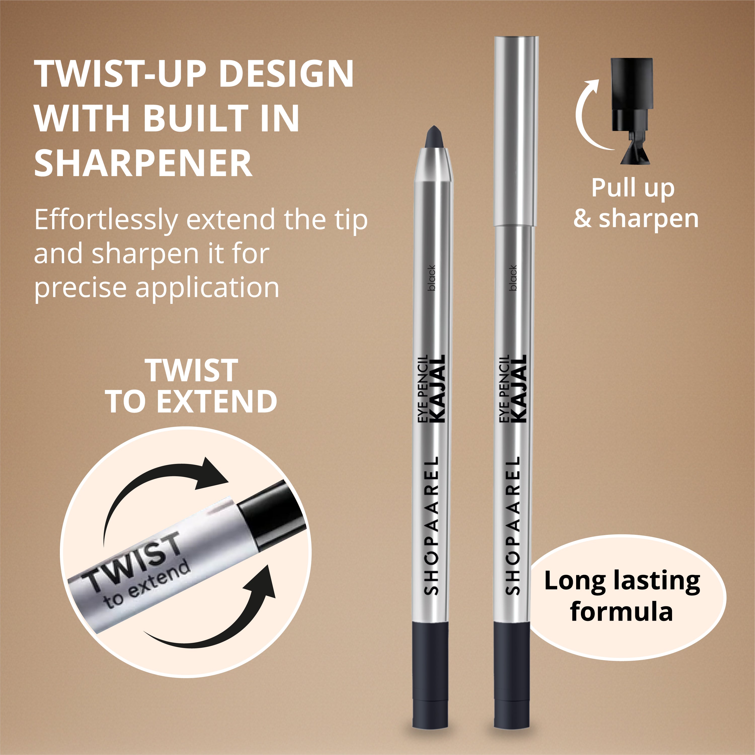 Shopaarel Eye pencil Kajal formula for dramatic eye make-up looks. The rich, creamy consistency imparts high-pigment colour and can be applied inside or outside of the lash line. Take advantage of Shopaarel Kajal Pencil 24 hour wear and use them to draw on the face or body for creative makeup looks. - Super Smooth Texture - Made In Korea - 100 % Water Proof - -24 Hours Long Lasting